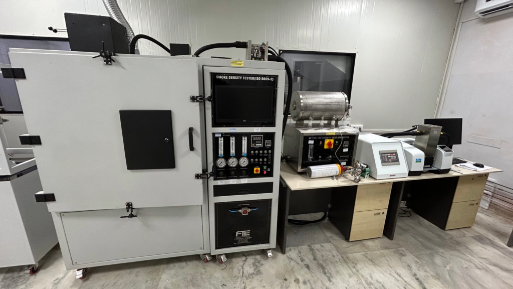 During testing, critical fire effluents, such as carbon monoxide (CO), hydrogen cyanide (HCN), hydrogen chloride (HCl), hydrogen fluoride (HF), nitrogen oxides (NO, NO₂), and sulfur dioxide (SO₂), are continuously monitored. This provides high-resolution, time-resolved data for toxicity assessment and compliance verification.