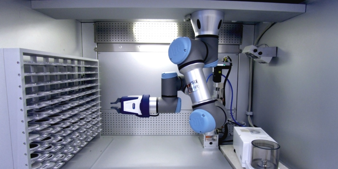 The co-bot station efficiently manages the workflow for batches of blank and sampled filters used in monitoring Total Suspended Solids (TSS) in water and wastewater. The system performs drying, conditioning and weighing cycles, allowing, with full capacity, the processing of 300 filters every 8 hours.